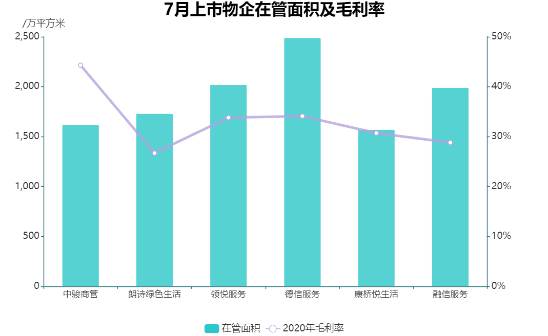 7月份新上市的6家物企分別為中駿商管、朗詩綠色生活、領(lǐng)悅服務(wù)、德信服務(wù)、康橋悅生活與融信服務(wù),數(shù)量上超過今年上半年新上市物企總和。