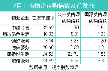 估值方面,7月新上市物企首發(fā)市盈率的平均值為24.6倍,其中中駿商管的市盈率相對較高,達(dá)到了近40倍。