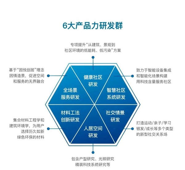 健康社區(qū)研發(fā)·智慧社區(qū)系統(tǒng)研發(fā)·社交情景研發(fā)·人居空間研發(fā)·材料工法創(chuàng)新研發(fā)·全場景服務(wù)研發(fā)。