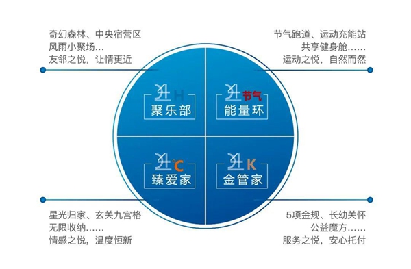 致力于把熱愛的情感與時間、空間的緊密連接,大發(fā)地產(chǎn)對悅居生活標(biāo)準(zhǔn)做了新一輪的升級。把“8大悅情景系統(tǒng)”升級為“4大悅居體系”:24H聚樂部(社區(qū)生活系統(tǒng))、24節(jié)氣能量環(huán)(社區(qū)健康系統(tǒng))、24℃臻愛家(家庭生活系統(tǒng))、24K金管家(社群與智慧服務(wù)系統(tǒng))。以情景體驗、感知、參與及服務(wù)為設(shè)計,建起了全時全齡的悅愛社區(qū),為城市人群創(chuàng)造有情有景的理想生活。