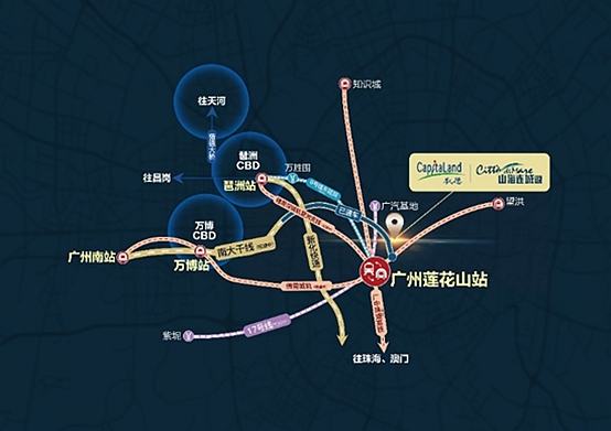 緊鄰樞紐蓮花山站的凱德·山海連城,為3條城軌、2條地鐵的便捷交通網(wǎng)所環(huán)繞,未來將實(shí)現(xiàn)3站公共交通到達(dá)琶洲、萬博CBD,暢享從容出行生活。除此之外,項(xiàng)目還享受南大干線和新化快速所帶來的發(fā)展利好,與萬博CBD、南站商務(wù)區(qū)和琶洲CBD建立起緊密的聯(lián)系,未來或?qū)⒊蔀閺V州主城的置業(yè)焦點(diǎn)。