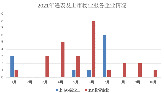 截至2021年10月31日,目前在資本市場(chǎng)共計(jì)有物業(yè)服務(wù)企業(yè)52家,包含滬深股市中4家物業(yè)服務(wù)企業(yè)。自7月物業(yè)服務(wù)企業(yè)迎來(lái)一波,上市潮便遭遇冷凍期。