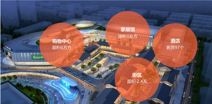 集購(gòu)物中心+開(kāi)放式街區(qū)+文旅酒店+家居館于一體的商業(yè)綜合體,給消費(fèi)者來(lái)多種購(gòu)物體驗(yàn)。