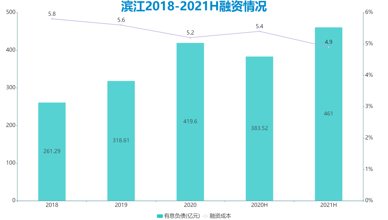 觀點新媒體翻查濱江2021年中報發(fā)現(xiàn),截至報告期濱江有息負債達到461億元,其中銀行貸款占比73%,直接融資占比27%。