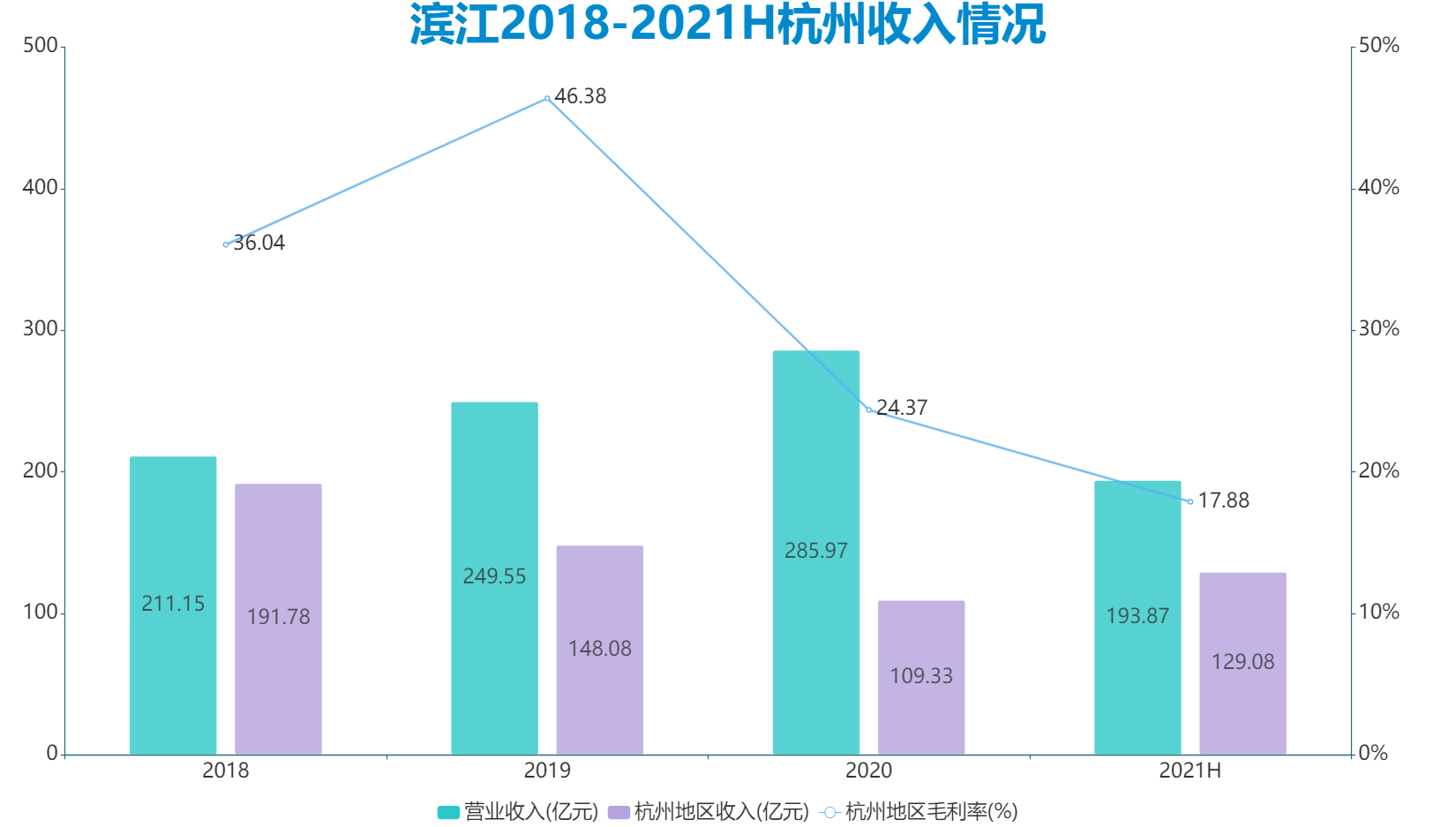 數(shù)據(jù)顯示,2018年至2021年中期,濱江在杭州地區(qū)毛利率已從36.04%降至17.88%。
