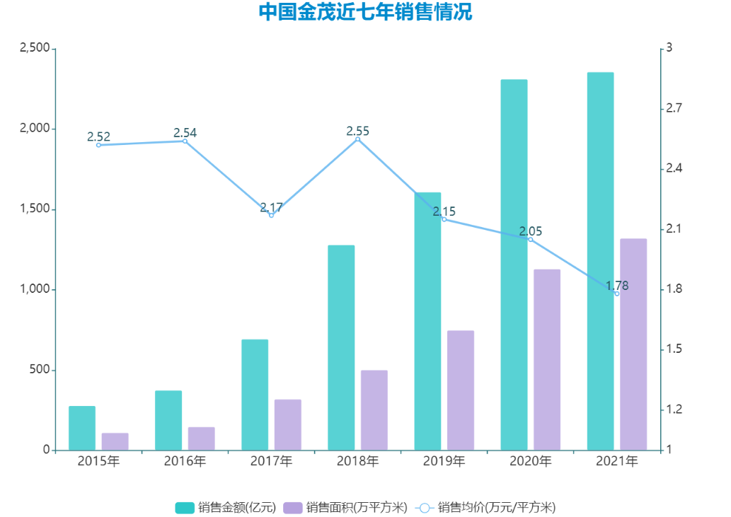2020年,中國(guó)金茂累計(jì)實(shí)現(xiàn)簽約銷售額2311億元,較2019年增長(zhǎng)44%,而2017年定下的“5年內(nèi)銷售額達(dá)到2000億元”也宣告達(dá)成。
