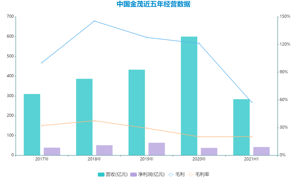 2020年,中國(guó)金茂整體銷售毛利率為20%,較2019年下降9個(gè)百分點(diǎn),2021年上半年,中國(guó)金茂毛利率20.3%,同比下降12個(gè)百分點(diǎn)。