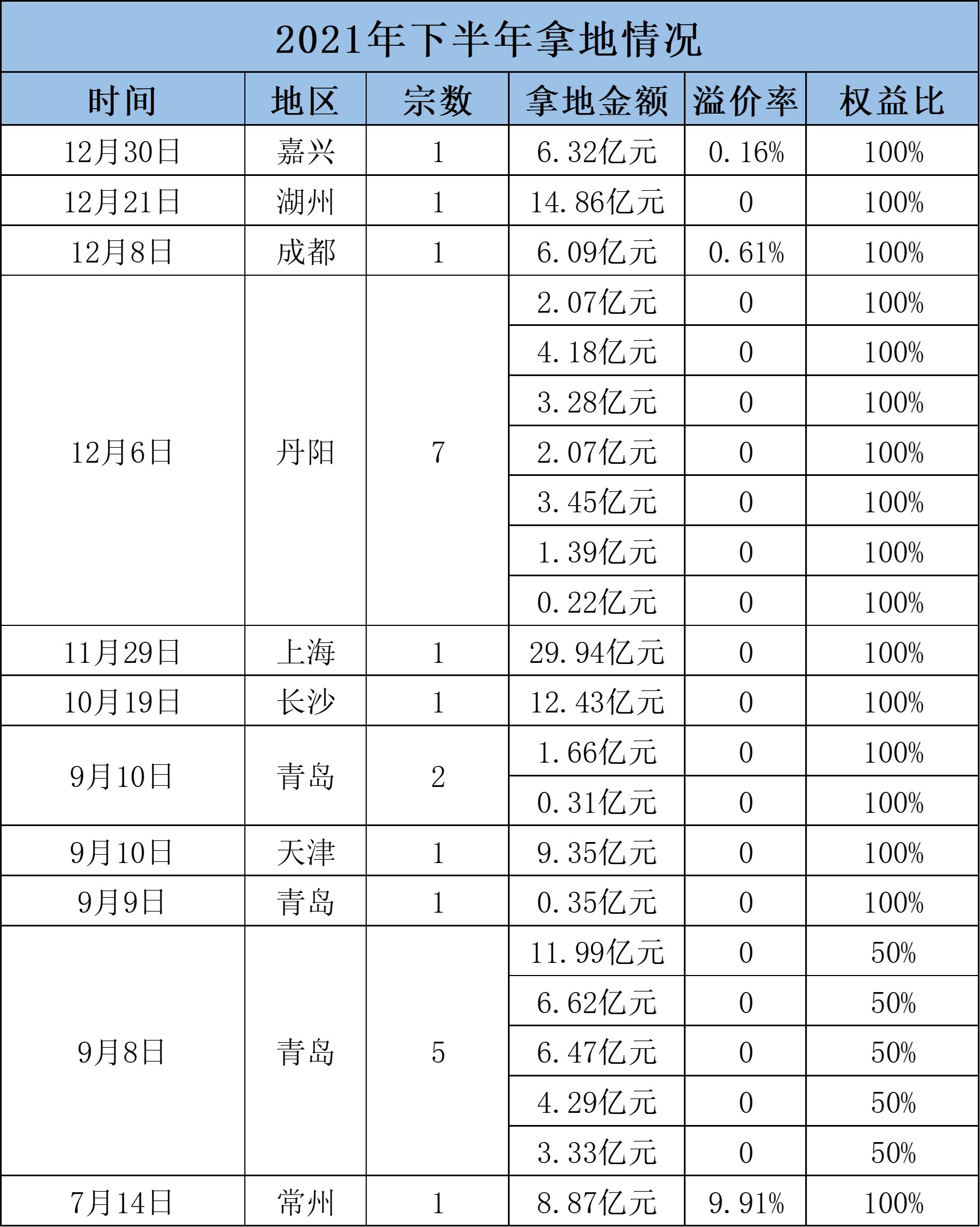 截至2021年6月底,中國(guó)金茂總土地儲(chǔ)備超過(guò)8552萬(wàn)平方米。進(jìn)入下半年,于青島、長(zhǎng)沙、天津、常州等地競(jìng)得十余宗地塊,均為底價(jià)成交。