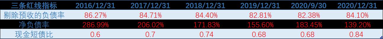 因?yàn)榫G地控股的“三條紅線(xiàn)”指標(biāo),在近幾年來(lái)一直處于全紅狀態(tài)。