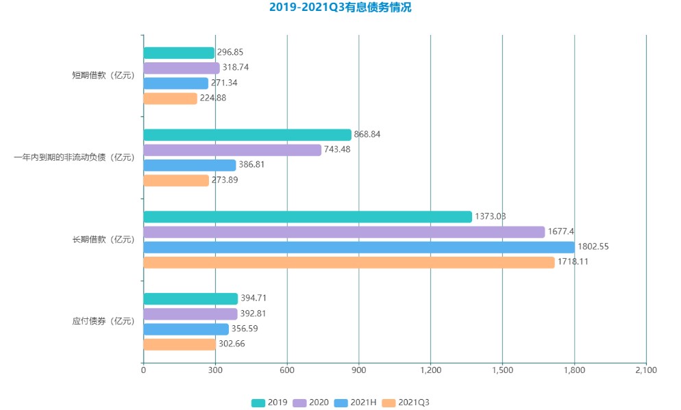 2021年整體負(fù)債呈現(xiàn)回落跡象,短期借款三季度較2020年末減少超93億元,一年內(nèi)到期的非流動(dòng)負(fù)債減少明顯。
