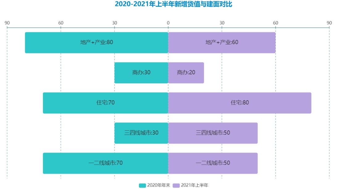 2021年中報(bào)數(shù)據(jù)披露,綠地貨值方面一二線(xiàn)城市比例下降了20%,三四線(xiàn)城市上升至50%,因?yàn)橄鲁寥木€(xiàn)城市布局,拿地成本相對(duì)較低;建筑面積方面住宅占比上漲,地產(chǎn)+產(chǎn)業(yè)占比下降,依靠的“地產(chǎn)+”模式也逐漸轉(zhuǎn)向住宅模式,“現(xiàn)金為王”的時(shí)代下住宅在現(xiàn)金回流方面有著更強(qiáng)的優(yōu)勢(shì)。