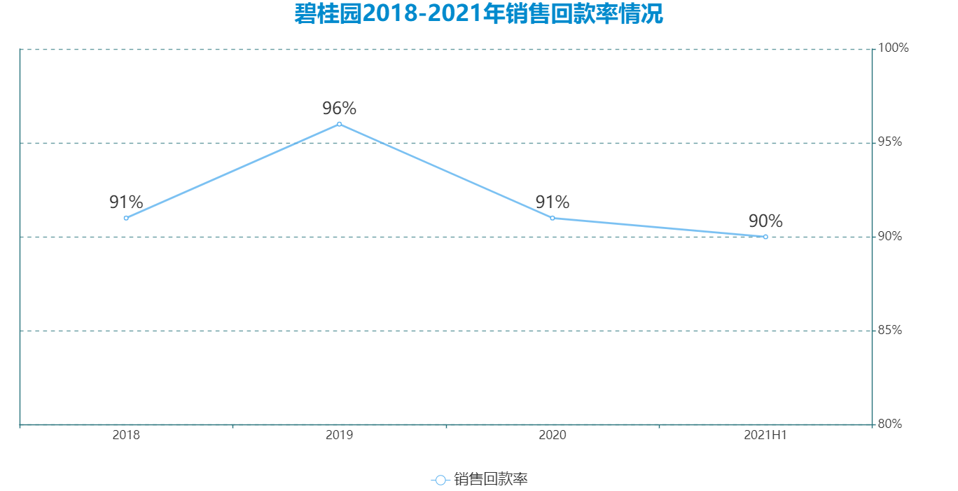 據(jù)了解,早在2019年開始,碧桂園就以回款現(xiàn)金流為行政考核的標(biāo)準(zhǔn),因此也可觀察到當(dāng)年銷售回款率提升了5個(gè)點(diǎn)至96%,處于行業(yè)高位。