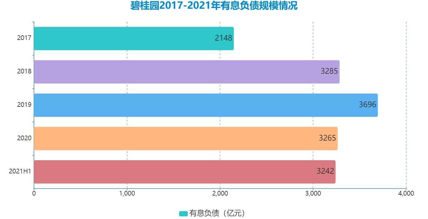 以有息負(fù)債為例,近幾年碧桂園一直有意識地控制有息負(fù)債地規(guī)模,尤其在2019年逼近3700億元之后。