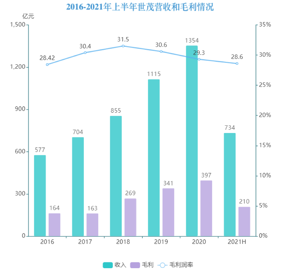 截止到2021年中期,半年報(bào)數(shù)據(jù)顯示,世茂實(shí)現(xiàn)營業(yè)收入734.01億元,同比增長13.71%;核心利潤93.8億元,同比上升13.6%;歸屬母公司凈利潤62.83億元,同比增長19.32%。