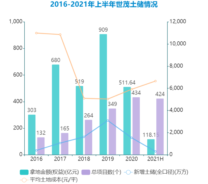 過去兩年的大規(guī)模投資和收并購,讓世茂積累了一定的資本。據(jù)透露,2021年上半年少拿地的情況下世茂依然能夠維持3-4年的銷售。