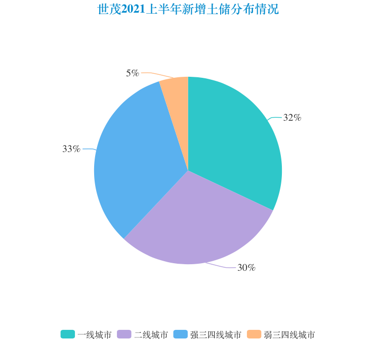 從布局來看,世茂新增土地儲備主要集中在一二線城市及強(qiáng)三四線城市;按土地總價(jià)來看,一二線及強(qiáng)三四線城市占比約95%,其中一線和二線土地儲備分別占比32%、30%。