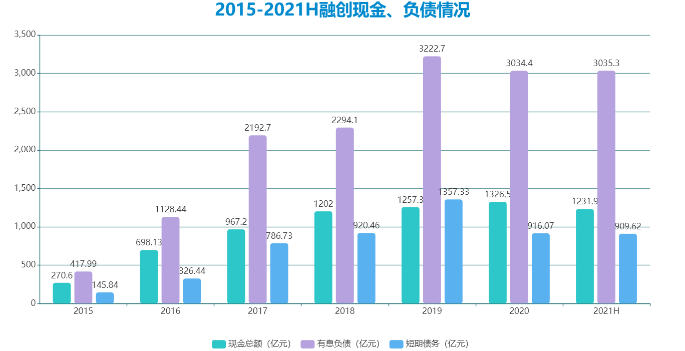 截至2021年中期,融創(chuàng)集團現(xiàn)金余額(包括受限制現(xiàn)金)由2020年末1326.5億元減少至1231.9億元,其中非受限制現(xiàn)金由2020年末的987.1億元增加至1011.0億元,足以覆蓋短期有息負債。