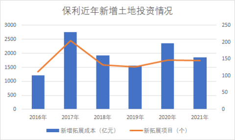 實際上,2020年保利發(fā)展抓住下半年市場出現(xiàn)拓展機會,將年度投資計劃從3150億元調(diào)增至3350億元,最終在土地端新增拓展成本2353億元,僅次于2017年水平。
