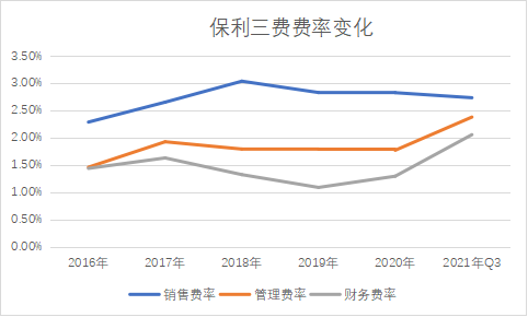 毛利率年內(nèi)呈下行趨勢,至三季度末約為29.82%,分別較2020年末及上半年下降2.77個點、2.68個點;凈利率截止期末僅為9.81%,這也是2016年以來最低水平。