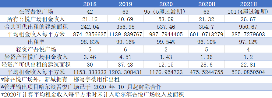 吾悅廣場(chǎng)2018-2021H經(jīng)營(yíng)情況