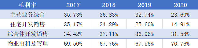 新城2017-2020毛利率變化