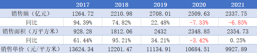 新城2017-2021銷(xiāo)售