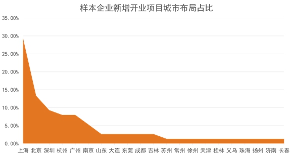 在城市布局上,目前多數(shù)企業(yè)項目分布以人口凈流入量大城市為主,其中一線城市占比最大。