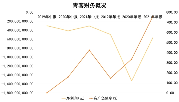 負(fù)債也在逐年增長,截至2021年9月30日,青客公寓負(fù)債總額為39.61億元。2018年至中報期末,資產(chǎn)負(fù)債率未低于70%,但至2021年財報期間已達758.03%。