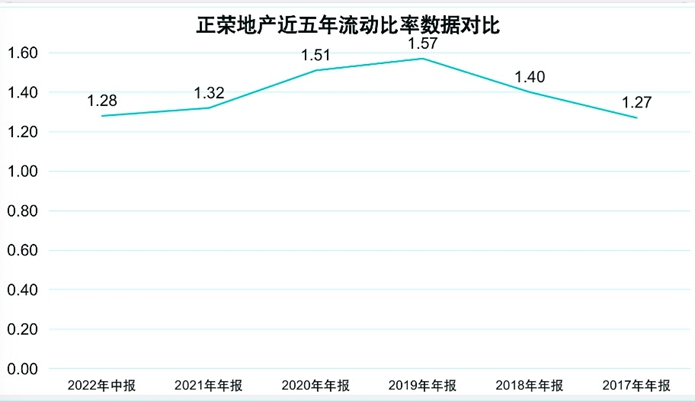 再來看看正榮的流動比率,截至2022年中期,流動比率為1.28,而于2021年年末,其流動比率則達1.32。