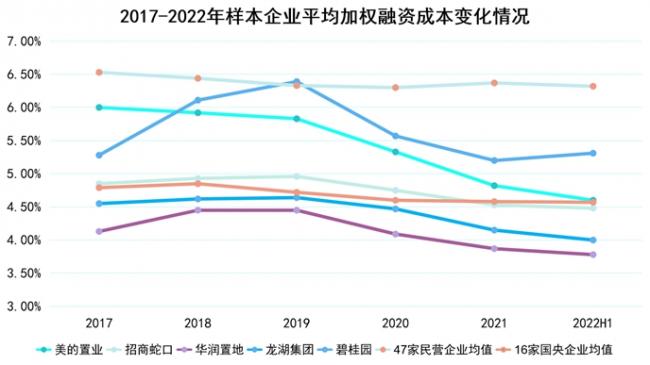 數(shù)據(jù)顯示,截至2022年中期,美的置業(yè)加權(quán)平均融資成本持續(xù)下降22個(gè)基點(diǎn)至4.60%,對(duì)應(yīng)利息開支較2021年年末下降5.41%。