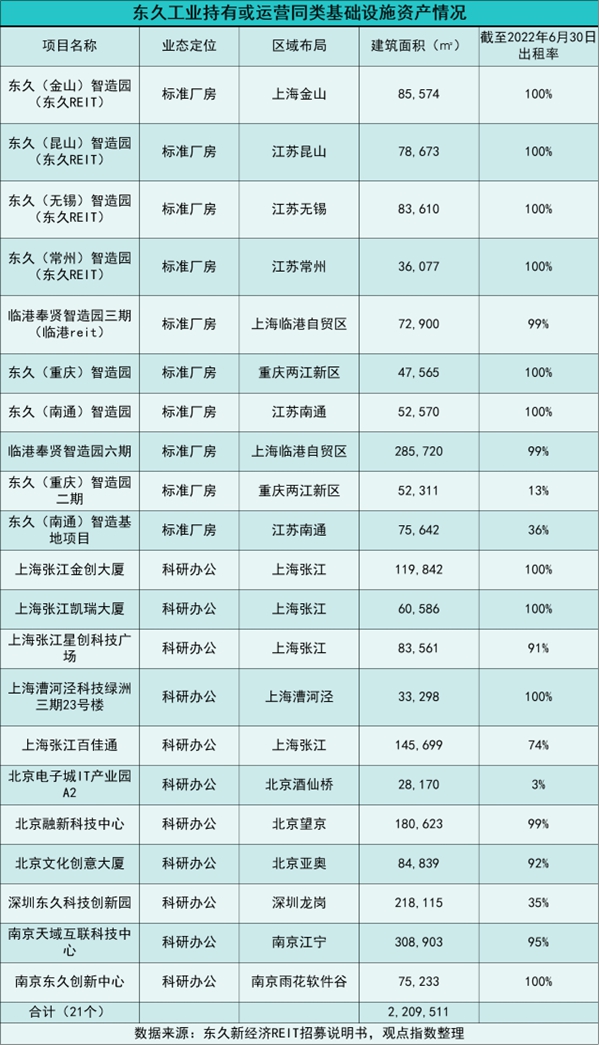 數(shù)據(jù)來源:東久新經(jīng)濟(jì)REIT招募說明書,觀點(diǎn)指數(shù)整理