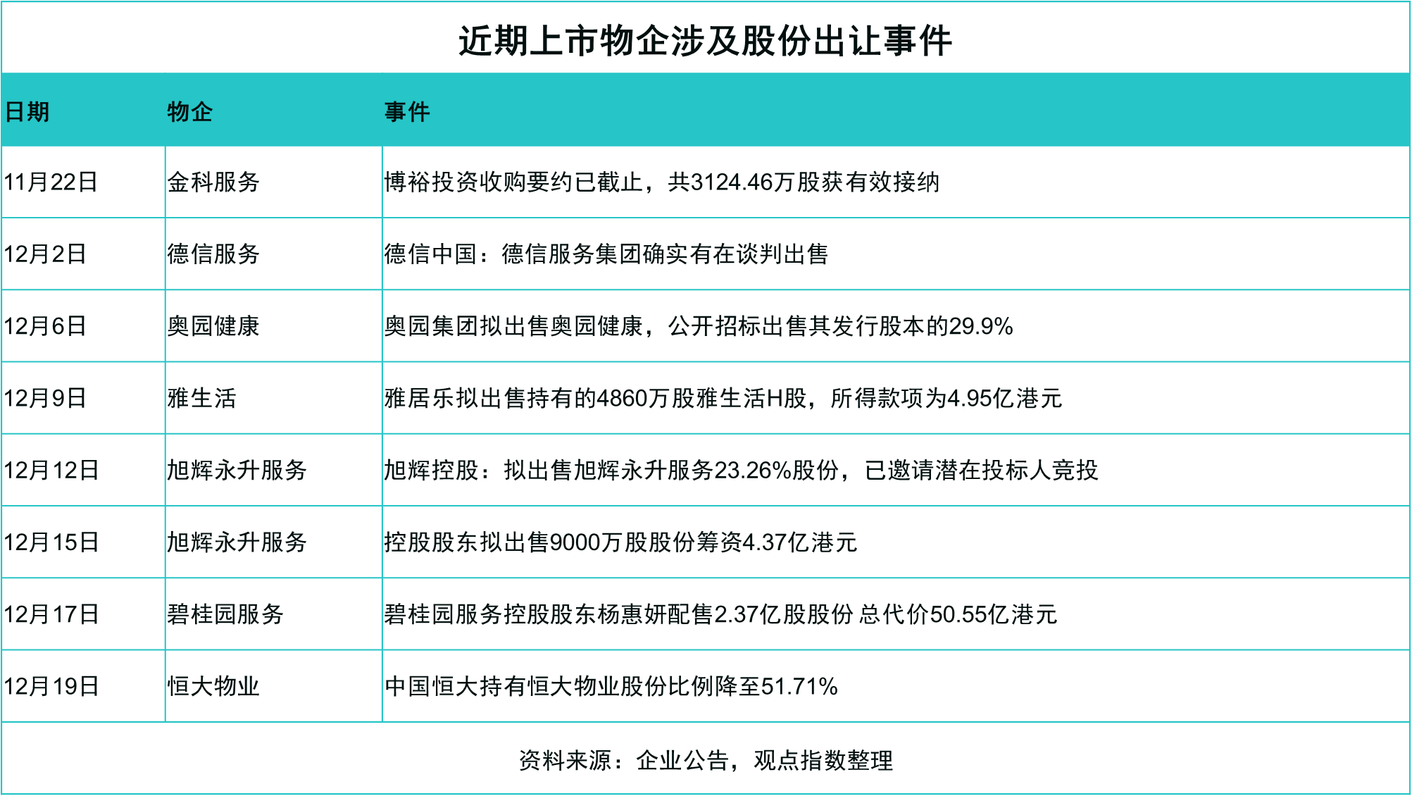 不過,市場環(huán)境也逐漸發(fā)生變化,2022年底,行業(yè)內(nèi)出現(xiàn)了一波房企大比例減持和出售物業(yè)公司股權(quán)的現(xiàn)象,未來物業(yè)公司普遍獨立化、地產(chǎn)關(guān)聯(lián)弱化的進度,可能會比預(yù)想中來得更快。