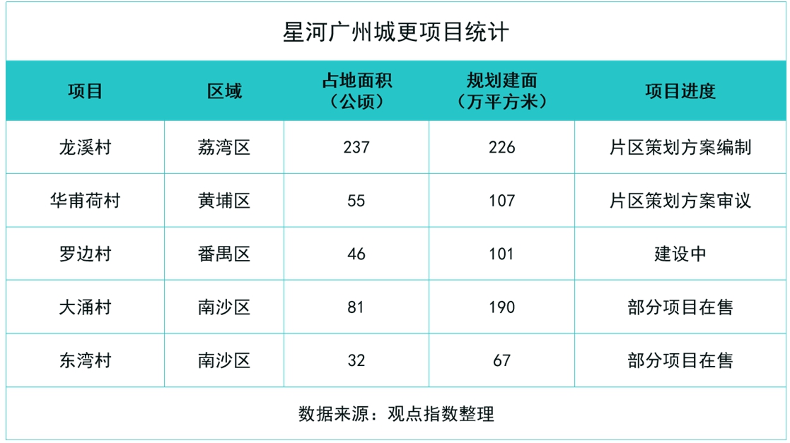 盡管廣州城更氛圍不如此前,星河亦受到一定程度影響,但幸運的是,仍有不少項目在推進當中。