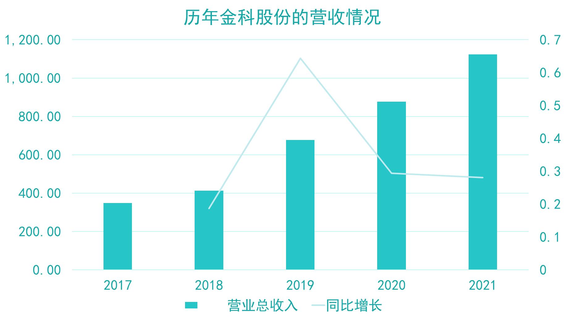 根據(jù)往期財(cái)務(wù)數(shù)據(jù),2017-2021年間金科收入實(shí)現(xiàn)了可觀的攀升,2019年?duì)I收增速同比高達(dá)64.36%。