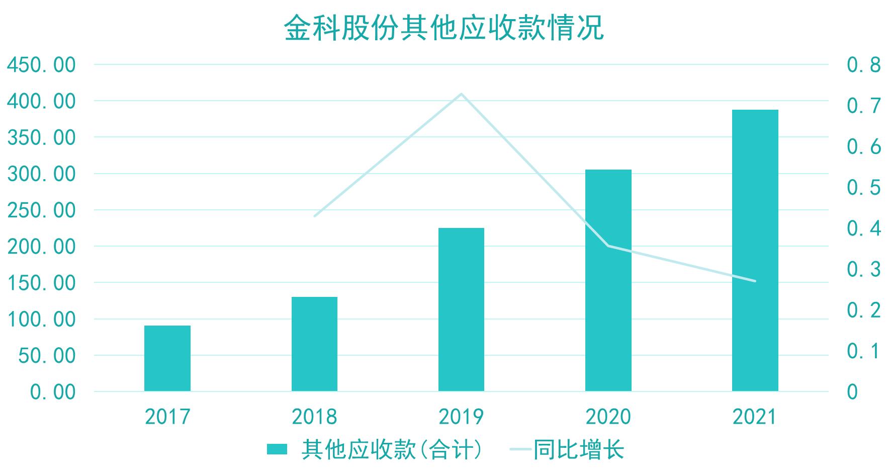 2019年,金科其他應(yīng)收賬余額約245億元,同比增加72.76%。其中,與合作方(合聯(lián)營公司)往來款賬面價(jià)值變化顯著,2019年余額約為80億元,同比上升589.08%。