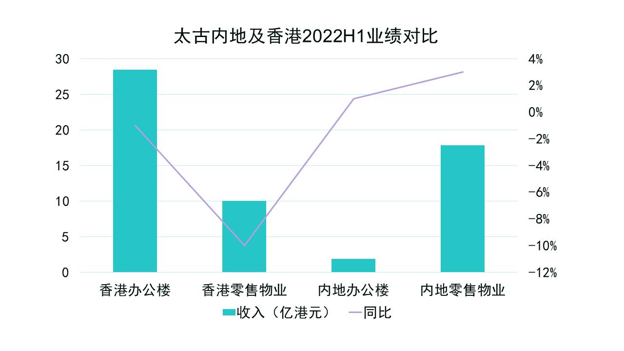 無論是辦公樓或零售業(yè)務(wù),太古香港板塊上半年均錄得收入同比下滑,而內(nèi)地則實(shí)現(xiàn)了同比上升。即使同受疫情和其他市場因素影響,內(nèi)地表現(xiàn)還是優(yōu)于香港。