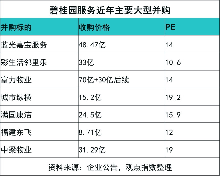 據(jù)觀點(diǎn)指數(shù)統(tǒng)計(jì),近年來碧桂園服務(wù)花費(fèi)在收并購(gòu)上的資金總量超過300億元,離不開資本市場(chǎng)的幫助。