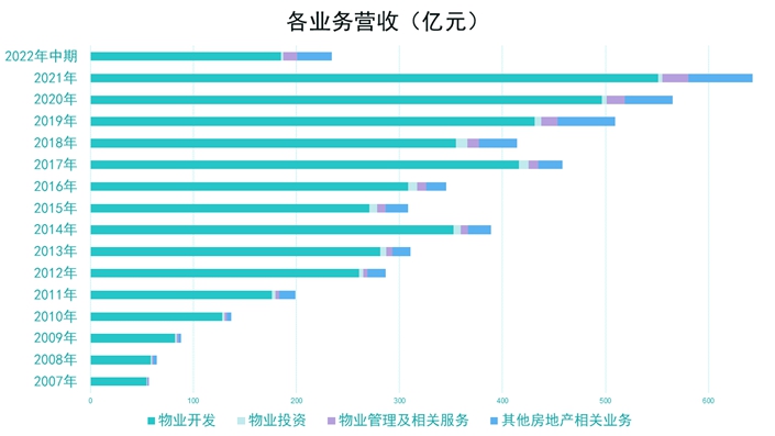 2022年上半年,遠(yuǎn)洋集團(tuán)營(yíng)業(yè)額為234.12億元,較2021年同期205.13億元上升14%。物業(yè)開發(fā)業(yè)務(wù)保持最大的貢獻(xiàn),約占總營(yíng)業(yè)額79%。