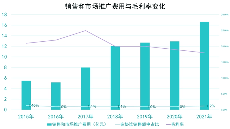 2018年至2021年,遠(yuǎn)洋集團(tuán)銷售和市場(chǎng)推廣費(fèi)用12.06億元增至16.6億元。最終結(jié)果便是以價(jià)換量、毛利率下滑,行業(yè)排名降低。