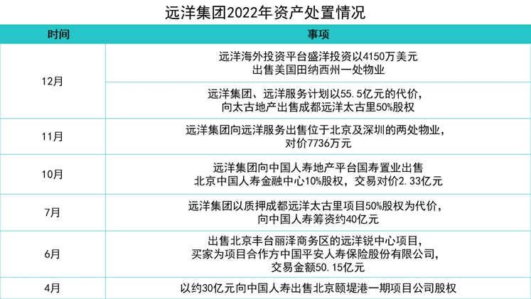 在這期間,遠(yuǎn)洋也不例外,對(duì)部分資產(chǎn)進(jìn)行處置,融資和償債是全年主線。