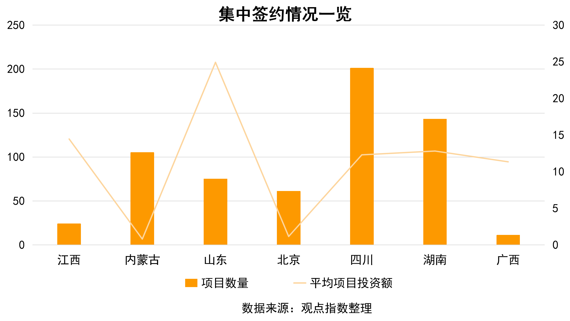 投融資方面,據(jù)觀點指數(shù)不完全統(tǒng)計,2022年共計有集中簽約事件7個,共八個地區(qū)集中開工。