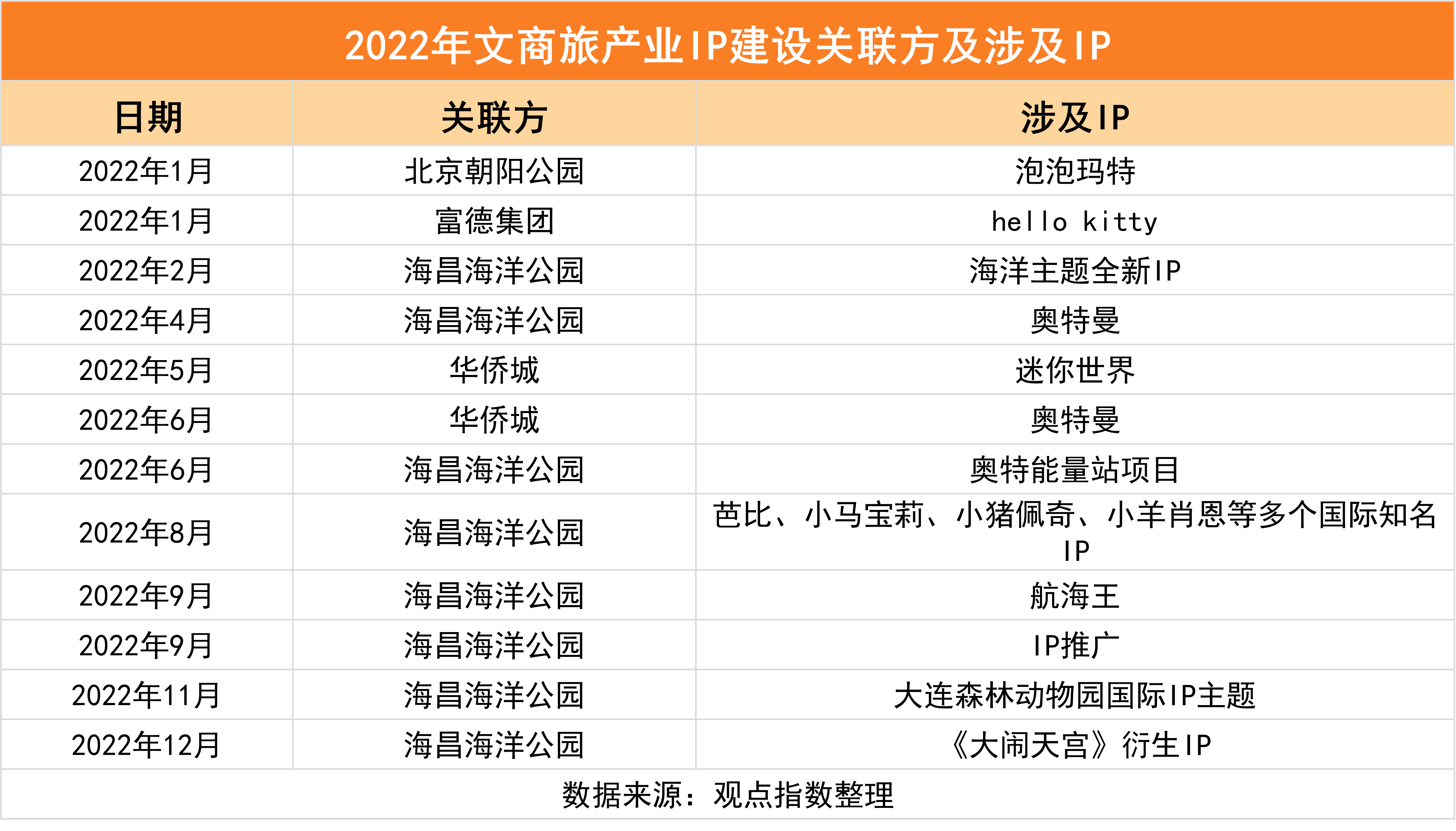 2022年6月,海昌海洋公園與歡樂谷簽署戰(zhàn)略合作協(xié)議,后者將向海昌海洋公園同時開放旗下八個歡樂谷項目,引入海昌海洋公園奧特曼超級能量站項目;同年9月,海昌海洋公園與中國儒意、歐樺文娛就IP簽約,就旗下IP與推廣展開各項合作。
