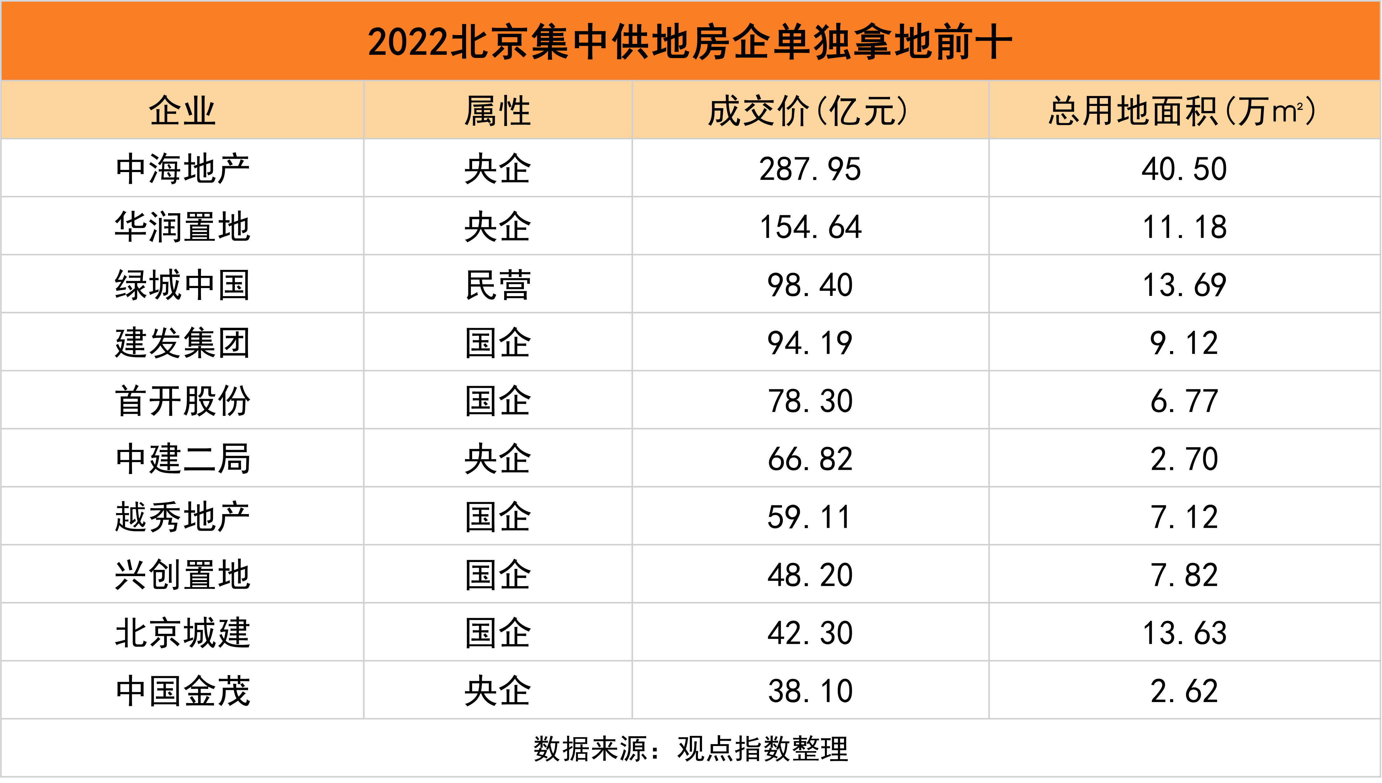 觀點指數(shù)認為,過去的一段時間里,國央企拿地是土拍市場的主流。主要原因是民營房企受困于資金短缺,其次是通過減少投資來增強抗風(fēng)險能力。大部分國央企拿地的情況相信還會持續(xù)一段時間,主要是市場筑底期間銷售回款帶來的現(xiàn)金流很難支撐民企大規(guī)模拿地。