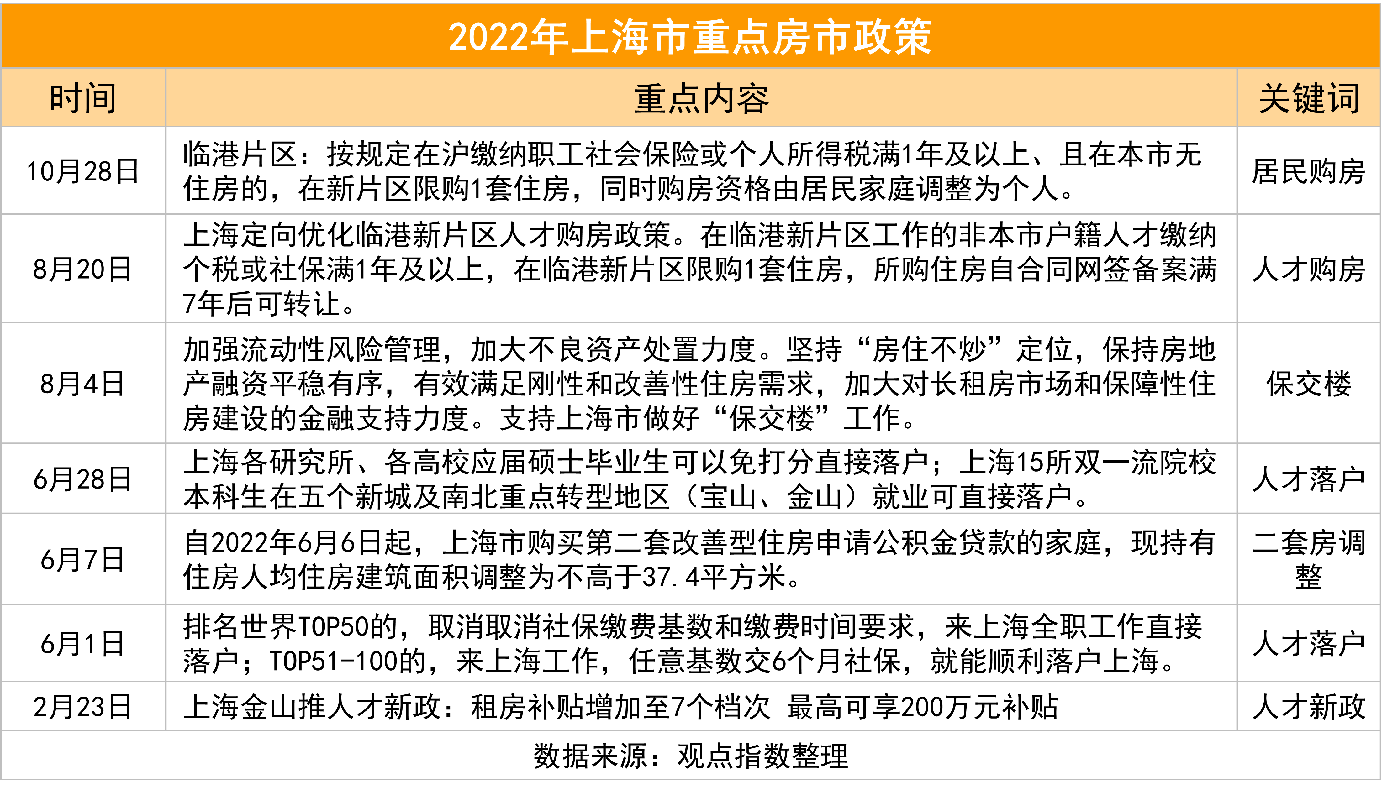 從觀點(diǎn)指數(shù)監(jiān)測(cè)到的信息來看,上海很多區(qū)域?qū)θ瞬怕鋺?、購房、住房租賃提供支持,比如人才認(rèn)定時(shí)間縮短、購房限制放寬、租房補(bǔ)貼等。