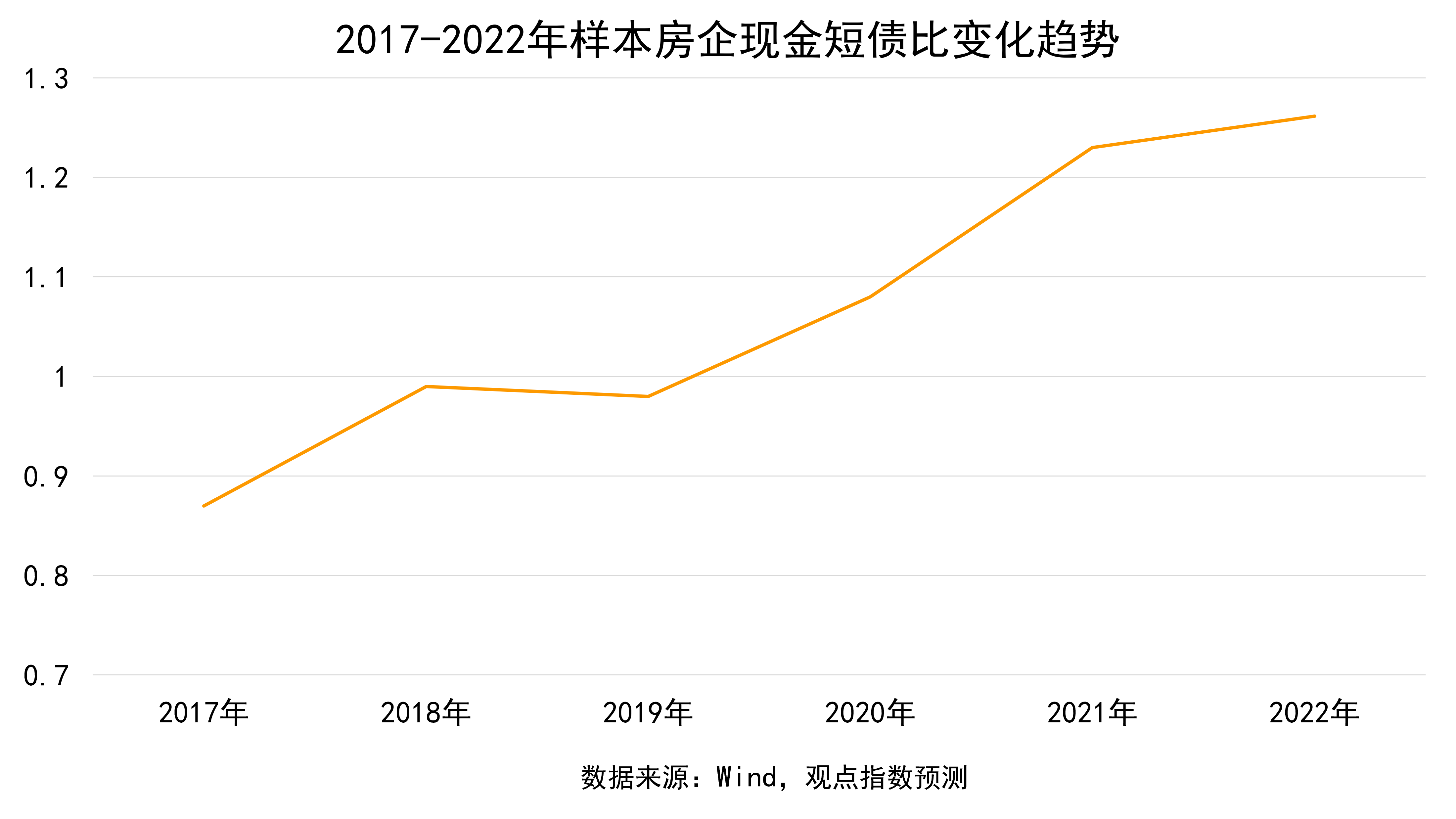 另一方面,2022年房企現(xiàn)金短債比呈現(xiàn)出小幅度上升趨勢。觀點指數(shù)認(rèn)為,現(xiàn)金流匱乏依舊是諸多房企亟待解決的問題。