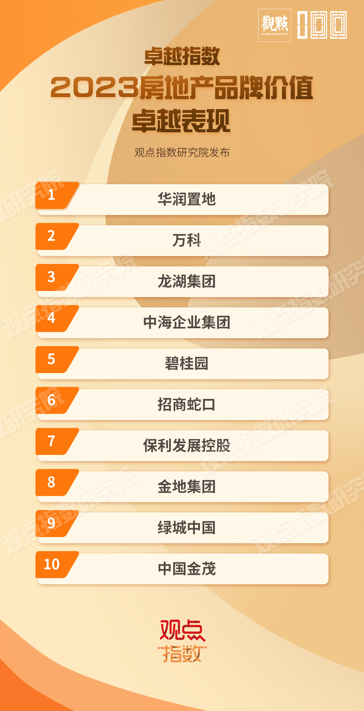 以下為其中的《2023房地產(chǎn)企業(yè)品牌價(jià)值卓越表現(xiàn)報(bào)告》及研究成果,更多請點(diǎn)擊2023觀點(diǎn)房地產(chǎn)卓越指數(shù) - 觀點(diǎn)網(wǎng) (guandian.cn)