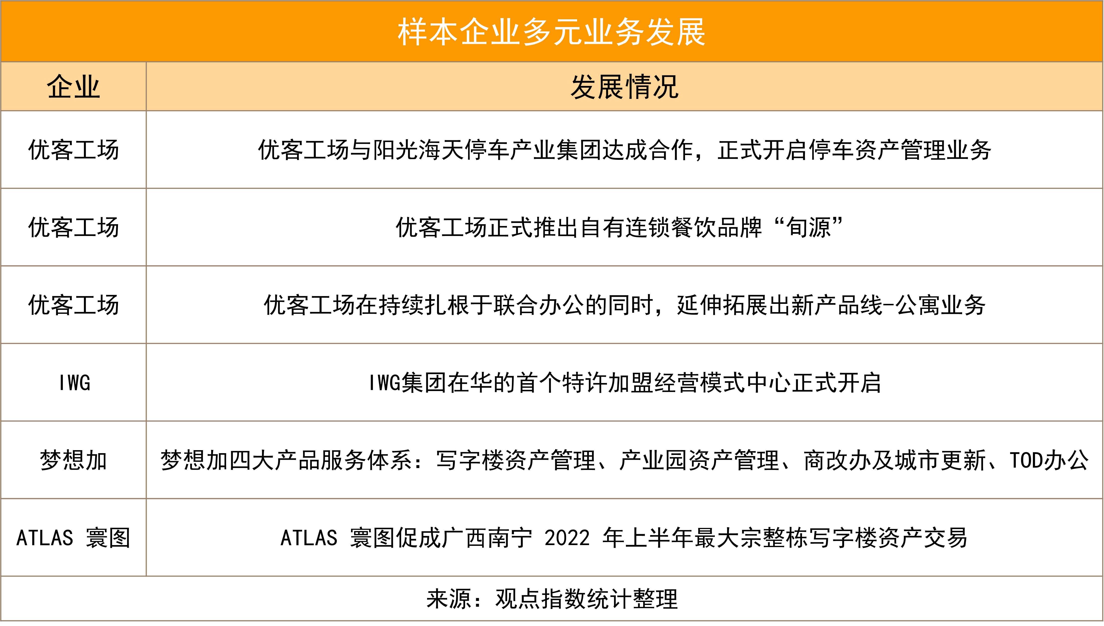 觀點(diǎn)指數(shù)認(rèn)為,基于自有資源的聯(lián)動(dòng),在現(xiàn)有業(yè)務(wù)之下尋求新的業(yè)績增長點(diǎn)成為辦公空間服務(wù)企業(yè)實(shí)現(xiàn)多元?jiǎng)?chuàng)收的重要突破口。