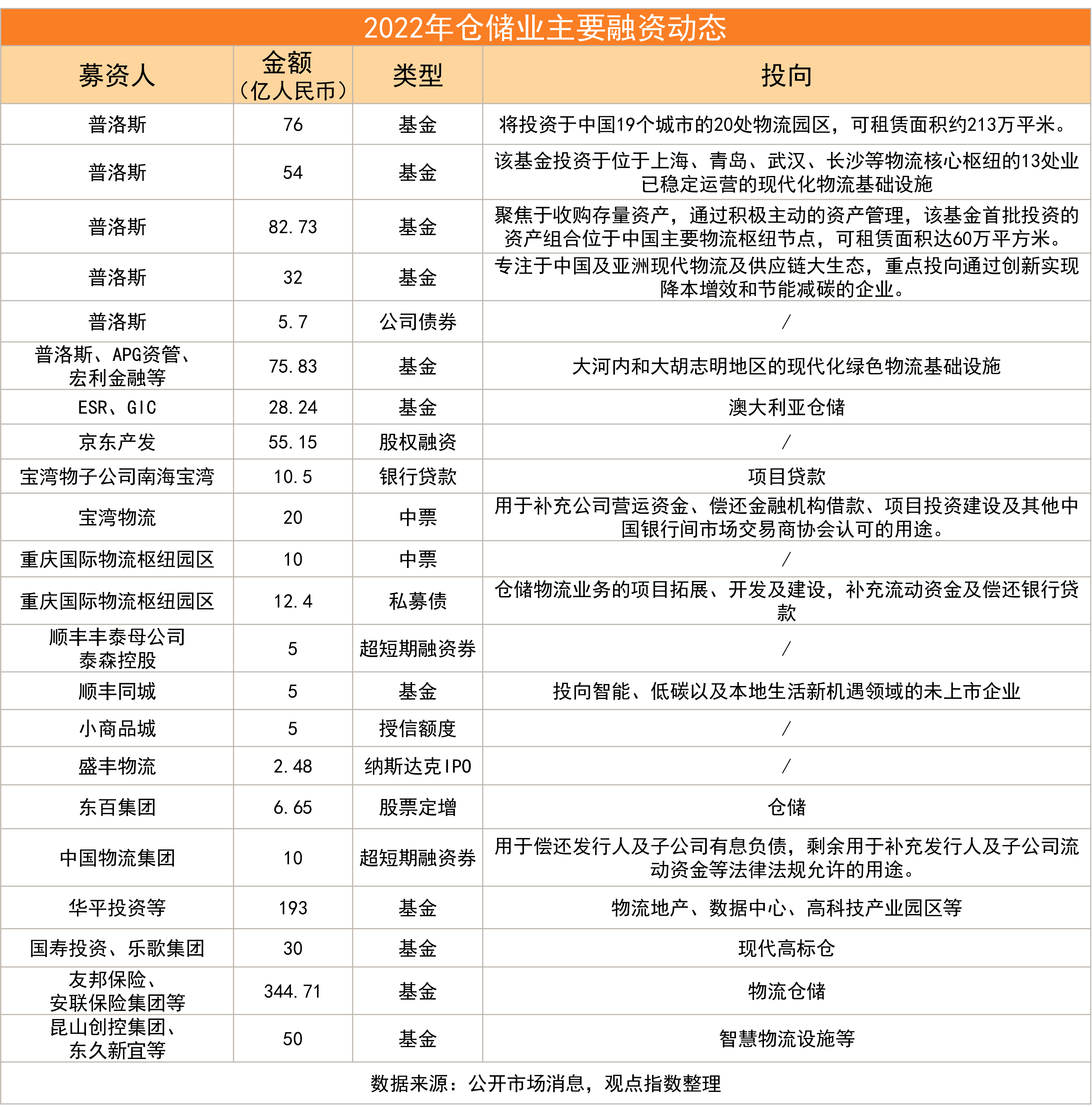 倉儲業(yè)的融資端主要以權益融資為主,其中又以基金設立為重。受經(jīng)濟下滑以及地產(chǎn)債信用事件的影響,債權融資整體環(huán)境較差。