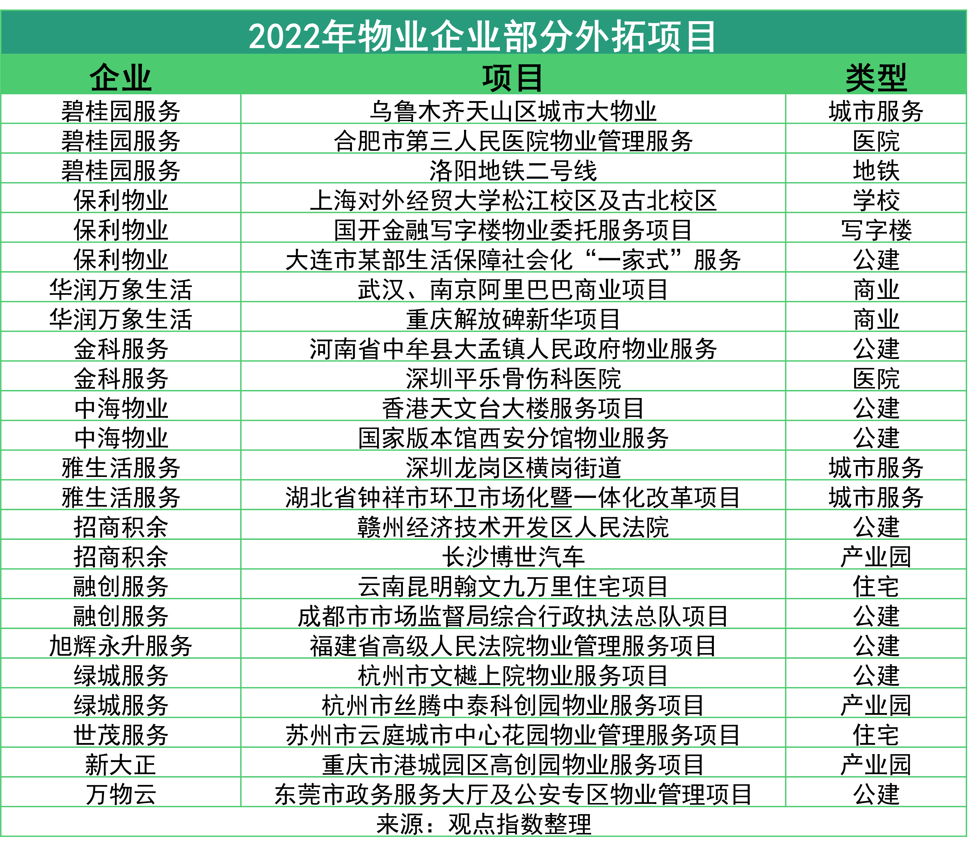 2022年,地產(chǎn)行業(yè)歷經(jīng)寒冬,物業(yè)服務(wù)行業(yè)自身也面臨新房交付乏力,行業(yè)整體管理面積增量市場收窄的困境,非住領(lǐng)域拓展成了物管企業(yè)的重點(diǎn),產(chǎn)業(yè)園、公建、商寫、各類場館,城市空間,都構(gòu)成了物企服務(wù)企業(yè)管理生態(tài)的重要部分。