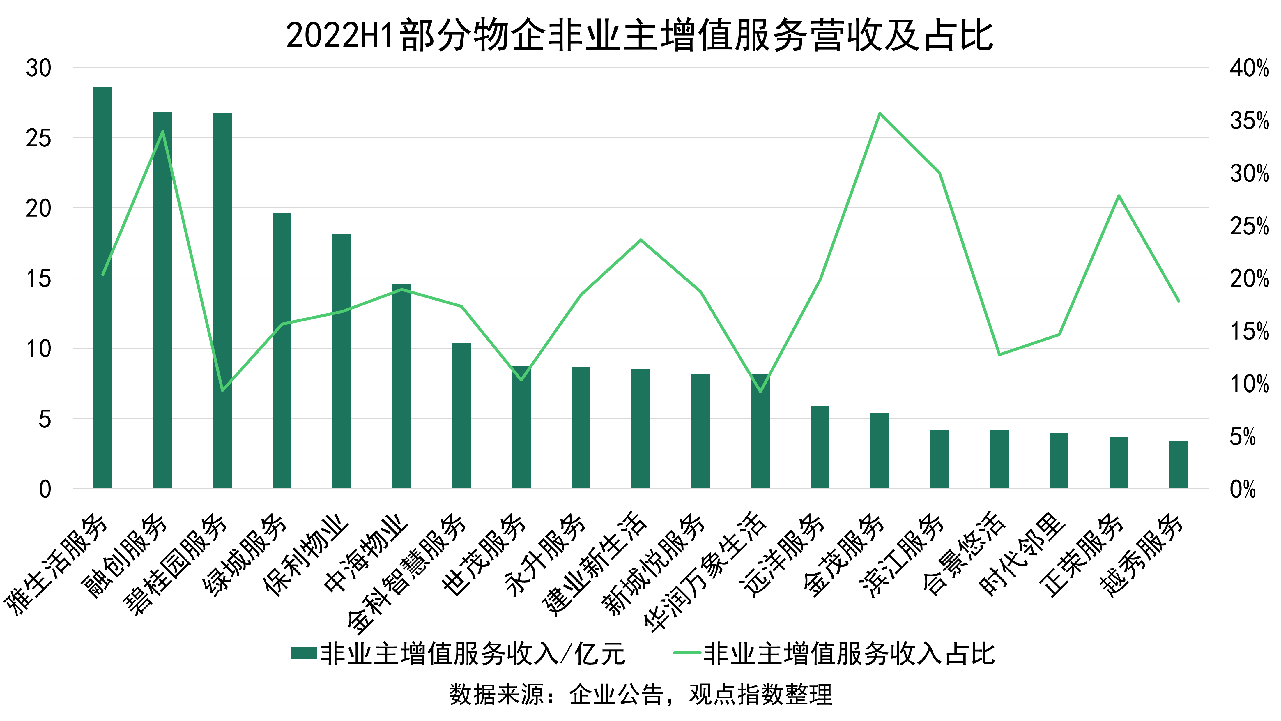 目前銷售前的20房企(根據(jù)觀點(diǎn)指數(shù)·2022年度房地產(chǎn)企業(yè)銷售表現(xiàn))當(dāng)中尚未完成分拆物業(yè)上市的,僅剩下龍湖物業(yè)服務(wù)集團(tuán)與金地物業(yè),行業(yè)整體上市節(jié)奏已基本進(jìn)入尾聲。